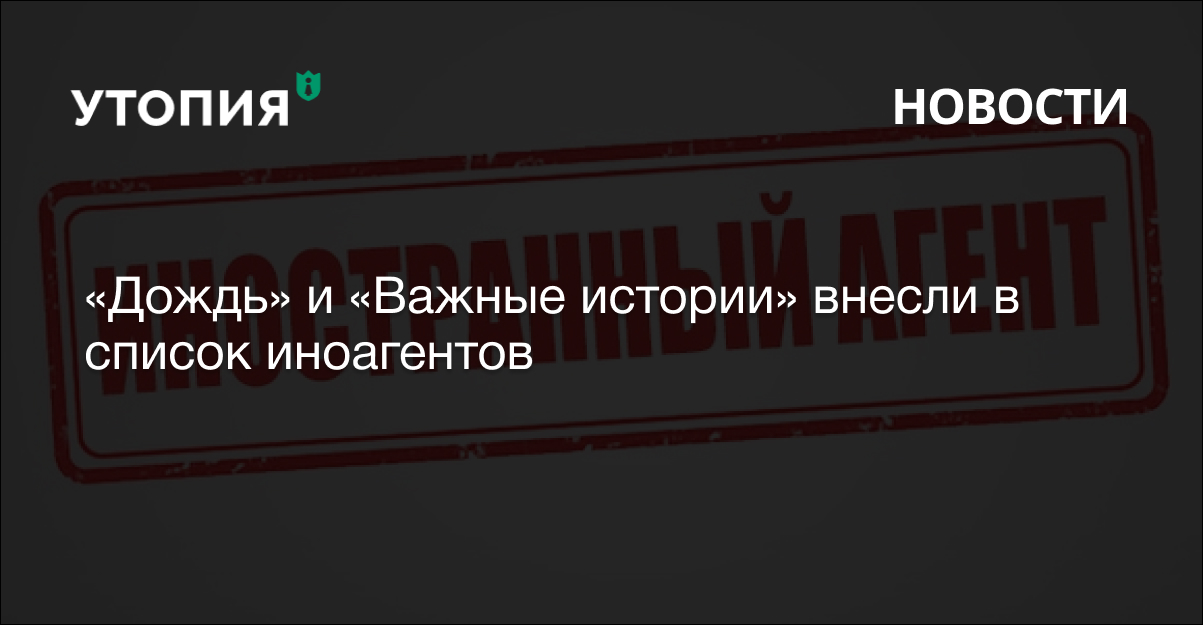 Телеканал «Дождь» и издание «Важные истории» внесли в реестр СМИ — иностранных агентов. Об этом сообщается на сайте Минюста. В список также внесли главного редактора «Важных историй» Романа Анина, корреспондентов издания Ирину Долинину, Алесю Мароховскую и Дмитрия Великовского, редактора Романа Шлейнова, а также журналистку-расследовательницу Олесю Шмагун.