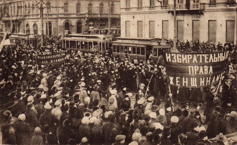 20 марта 1917 года «Лига равноправия женщин» организовала в Петербурге 40-тысячную женскую демонстрацию разных слоев, которая дошла до здания Думы с лозунгами «Место женщины в учредительном собрании», «Равное представительство без женщины — не равное», «Если женщина раба, не будет и свободы». Тогда на встречу им вышел председатель Временного комитета Государственной Думы Михаил Родзянко и пообещал включить женщин в состав избирателей. Россия была первой крупной европейской страной, в которой женщины получили избирательные права.