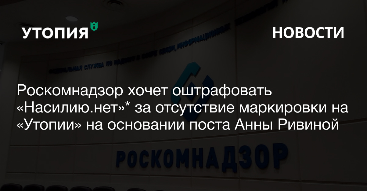 Роскомнадзор хочет оштрафовать «Насилию.нет»* за отсутствие маркировки на «Утопии» на основании поста Анны Ривиной