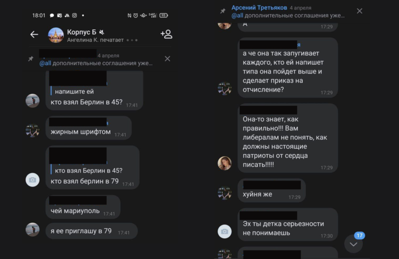 Еще один студент Антон (имя изменено) рассказал «Черте» о травле учащихся. По его словам, им начали писать читатели Z-пабликов, угрожать физической расправой, говорить, чтобы они все «свалили в Украину».