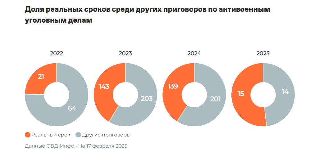 Большинство людей преследовали по первой части статьи, которая предполагает, что человек должен иметь минимум два решения суда по административным делам о дискредитации в течение одного календарного года. Это объясняет, почему пик применения этой статьи пришелся на 2023 год: за это время с начала вторжения у большинства политических преследуемых как раз появились вторые решения суда.